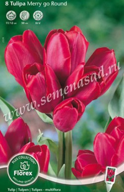 Мэрри гоу Раунд - несколько алых цветков на одном стебле смотрятся объемно и пышно. Высота - 50 см.
