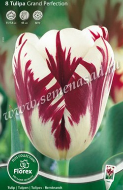 Тюльпаны Рембрандта - эти сорта имеют пеструю окраску цветка, но в отличие от пораженных вирусом пестрения, у них сохраняется постоянный рисунок из коричневых, бронзовых, черных, красных, розовых и пурпурных штрихов на красном, белом или желтом фоне. Растения высокие, цветки крупные. Пригодны только для открытого грунта.