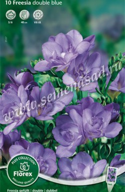 Блу - изящные благоухающие узковоронковидные цветки фрезии, диаметром 5-7 см, окрашены в нежно-голубой цвет, с переходом к основанию лепестков светло-желтый оттенок. Листья узкие, линейные, зеленого оттенка, что придает контраст цветку. Махровая фрезия цветет на прочных высоких побегах, высотою до 40 см. Если голубую фрезию высадить группами с яркими комбинированными цветами, то эффектней уголка в вашем саду просто не найти.