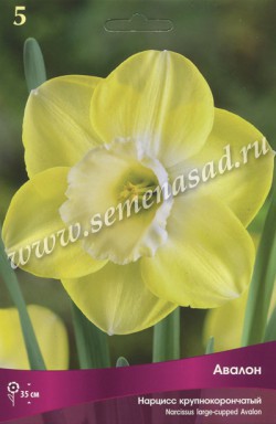 Авалон - высота растения 35 см, цветок лимонно-желтый с белой коронкой.