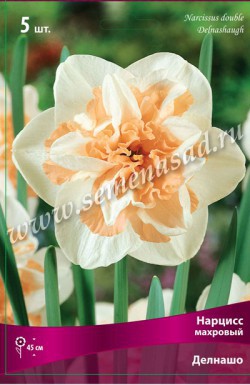 Делнашо - высота растения 45 см, цветок белый с лососевым центром, очень крупный.