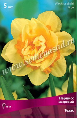 Техас - высота растения 45 см, цветок желтый с оранжевым центром.