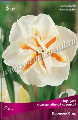 Бродвей Стар - высота растения 40 см, цветок белый с оранжевой звездообразной коронкой.