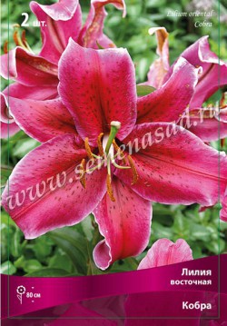 Кобра- высота растения 80см, цветок насыщенно-розовый с темным крапом, кончики белые.
