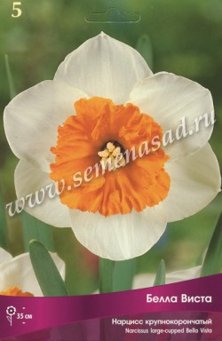 Белла Виста - высота растения 35 см, цветок белый с ярко-оранжевой коронкой.