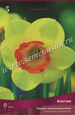 Бэнтэм - высота растения 40 см, цветок желтый с оранжевой коронкой.