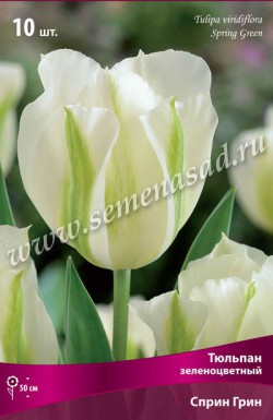 Зеленоцветные тюльпаны - С 1981г. тюльпаны, имеющие зеленый цвет спинки лепестков и сохраняющие его в течение всего периода цветения, были выделены в отдельный класс. Цветовой контраст зеленой середины и краев лепестков, окрашенных в разные цвета (в зависимости от сорта) -- белый, розовый, красный, желтый и другие - смотрится очень необычно. В настоящее время Зеленоцветные тюльпаны считаются очень модными. Высота тюльпанов этого класса может варьироваться от средней до высокой. Цветы 5-7см высотой, листья некрупные, узкие. Середина лепестков, имеющая зеленую окраску, обычно утолщенная. Цветут Зеленоцветные тюльпаны с середины мая, используются в основном для оформления садов и парков, а также выращиваются для срезки.