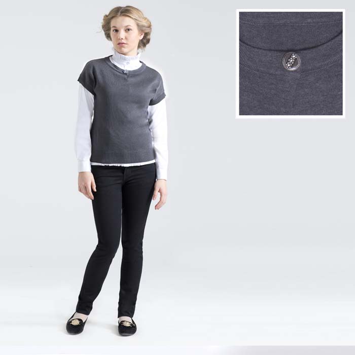 Жилет для девочки из вязанного полотна темно-серого цвета .