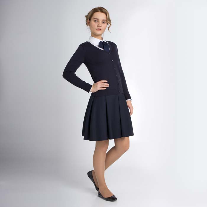 Жакет для девочки из вязанного полотна темно-синего цвета.Длина стандартная.Силуэт REGULAR.Застежка на пуговицы.