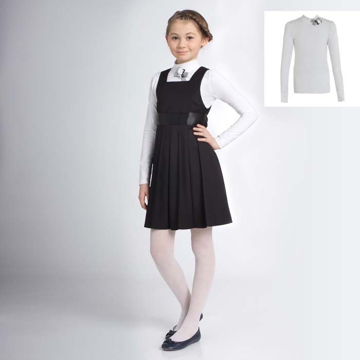 Водолазка для девочки из трикотажной кулирки белого цвета. Длина стандартная. Силуэт SLIM. Рукав по окату присборен. На спинке застёжка на пуговицу