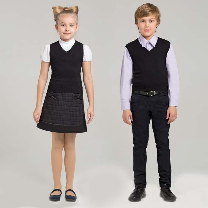 Жилет из вязанного трикотажка чёрного цвета. "У" образный вырез горловины.