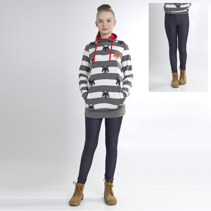Брюки-леггинсы для девочки из трикотажного материала темно-синего цвета с белыми вкрапинами. Притачной пояс продета резинка. Длина стандартная. Силуэт SLIM.