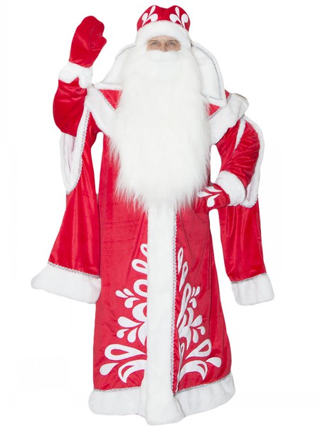 Состав комплекташуба с узорами из парчи, пояс, шапка, варежки, борода