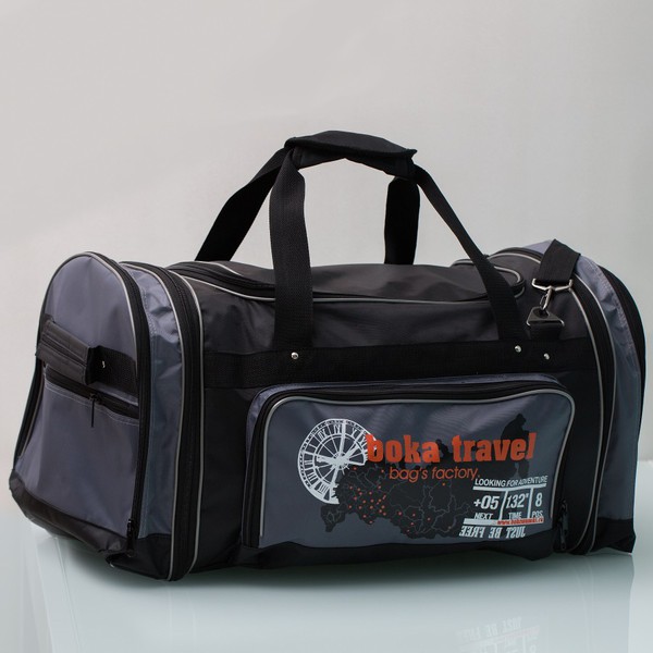Сумка дорожная, с трансформацией в боковые стороны, одним объемным спереди, двумя объемными и двумя плоскими боковыми карманами, с боковыми ручками