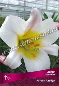 Ригейл Альбум- высота растения 80см, цветок белый с желтым центром.
