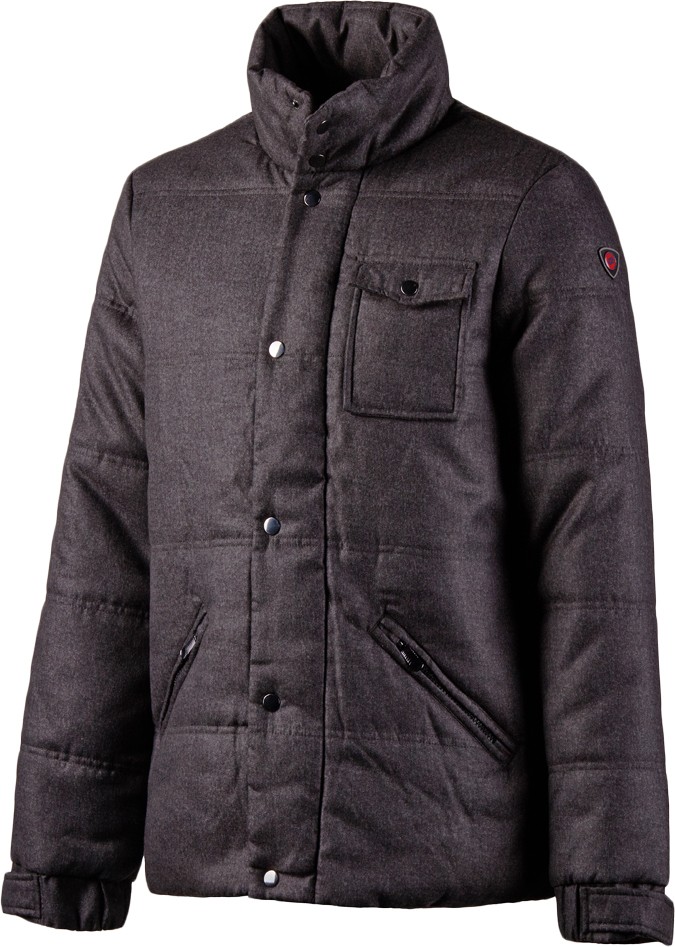 Модель с теплым наполнителем из полиэстера чудесно защитит вас от ветра и согреет в мороз. Высокий воротник стойка предохранит от ветра горло. Цвет исполнения немного напоминает шлифованный металл, чем разнообразит ваш повседневный стиль оригинальным для верхней одежды цветом. Два боковых кармана на застежках и один нагрудный карман на кнопке уместят в себе все необходимые повседневные мелочи. Для дополнительной защиты в суровую погоду застежка закрыта полосой ткани на кнопках. Она предотвратит попадание холодного ветра сквозь молнию. Рукава куртки на эластичных манжетах, которые дополнительно можно отрегулировать ремешком на липучке.