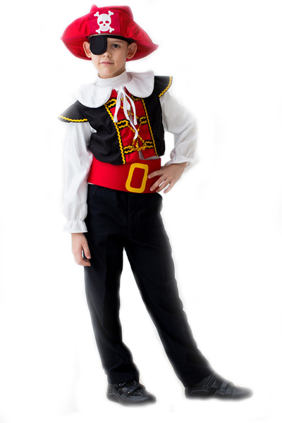 Состав комплекта шляпа, повязка на глаз, воротник, рубашка, жилет, пояс