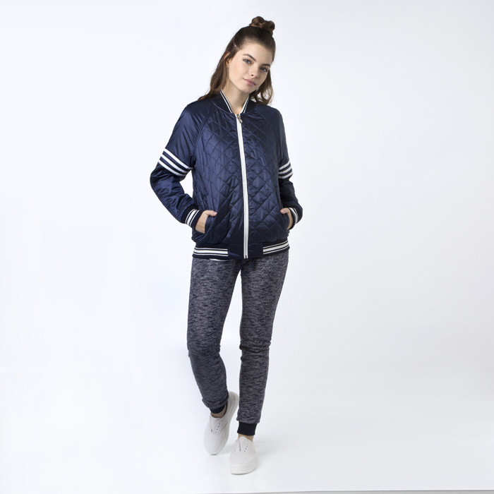 Куртка для девочки из курточной ткани тёмно-синего цвета, с водоотталкивающей пропиткой. Силуэт Прямой. Длина Стандартная . На молнии, на текстильной подкладке. Нижние боковые карманы с листочкой. Куртка утепленная с наполнителем шелтер 100г/м2. Низ рукавов ,воротники низ куртки окантован трикотажным материалом контрасного цвета. На рукавах изделия лампасы из текстильного материала контрасного цвета. Полочка и спинка изделия стеганные.Рукава-реглан.