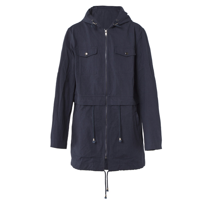Ветровка-парка для мальчика из текстиля тёмно-синего цвета.В капюшон продета шляпная резинка с фиксаторами.В пояс и низ изделия продет шнур с наконечниками.Центральная бортовая застёжка-молния.На полочке сверху два накладных кармана с клапаном и застёжкой-кнопка и два нижних боковых кармана в листочкой и застёжкой-молния.
