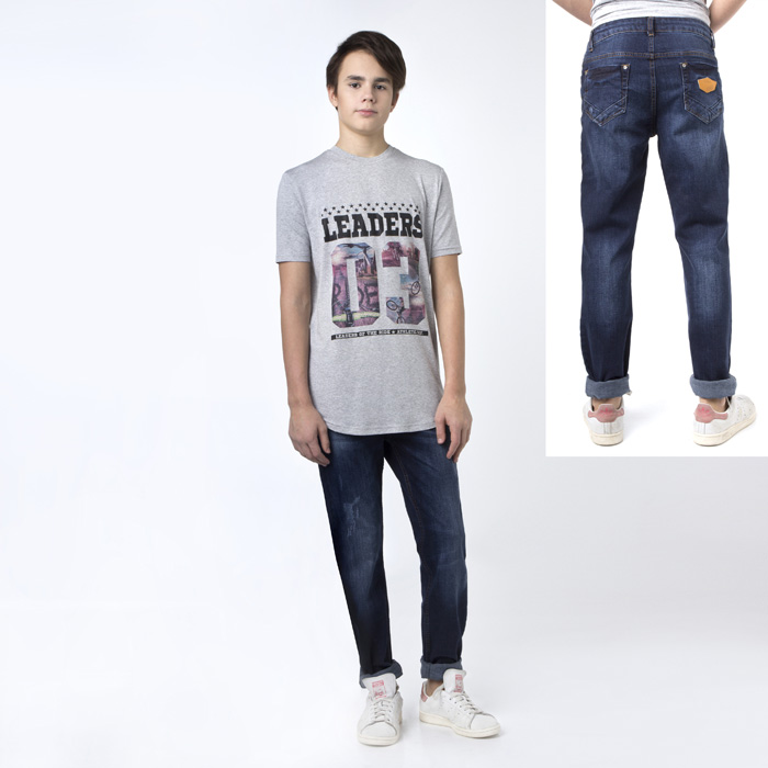Джинсы для мальчика тёмно-синего цвета.Силуэт Regular.Длина Стандартная.Спереди изделия два кармана с часовым.Сзади изделия два накладных кармана c хольнитенами.Застёжка-пуговица.На поясе изделия шлёвки для ремня.Джинсы спереди с эффектом "Потёртости".
