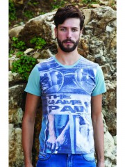 Стильная футболка спереди украшена оригинальным принтом. Округлый вырез горловины оформлен эластичной резинкой. Модель выполнена из высококачественного хлопка, что дает дополнительный комфорт при носке.