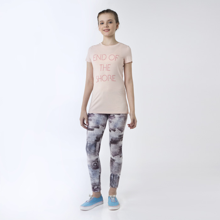 Леггинсы для девочки из текстиля сиреневого цвета. Длина Стандартная. Силуэт SLIM. Посадка Стандартная. В пояс изделия продета резинка.
