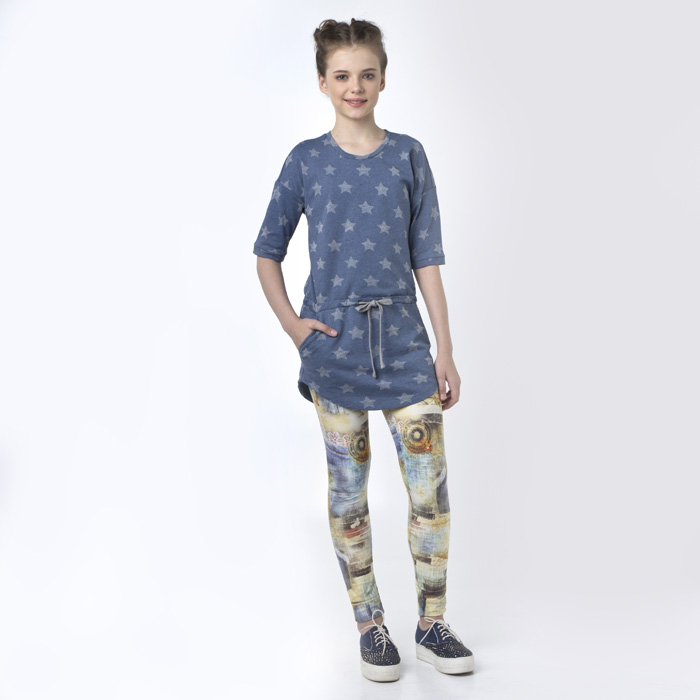 Леггинсы для девочки из текстиля сливочного цвета. Длина Стандартная. Силуэт SLIM. Посадка Стандартная. В пояс изделия продета резинка.