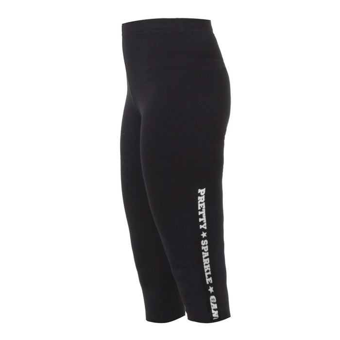 Бриджи для девочки из трикотажного материала(кулирка) чёрного цвета.По левой брючине сбоку принт выполнен экокрасками.В пояс продета резинка.Силуэт Slim.