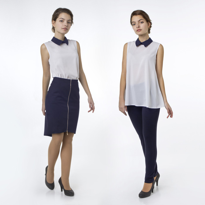Блуза для девочки из искусственного шёлка белого цвета на подкладке из 100% хлопка в виде топа.Длина Стандартная.Силуэт Прямой.Воротник изделия из отделочного текстильного материала контрасного ( тёмно-синего) цвета.