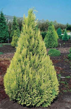 Листья: хвоя чешуевидная, золотисто-желтая