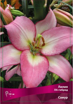Самур- высота растения 130см, цветок розовый с белым горлом, без крапа, крупный.