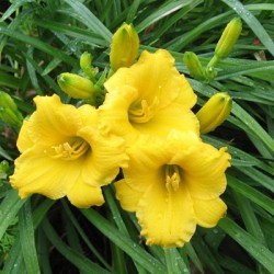 Мини Стелла: миниатюрный бордюрный лилейник, высотой 25 см. Цветок диаметром 3-5 см, жёлтый, со светло-оранжевым глазом вокруг зеленоватого горла, ароматный. Цветение раннее (середина июля), повторное.