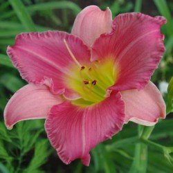 Файнал Тач: высота растения 80 см. Двуцветный: розово-лавандовые внутренние лепестки широкие, волнистые, отогнутые; внешние - кремово-розовые. Цветок до 12 см в диаметре, ароматный. Горло желто-зеленое. Поздний срок цветения (конец августа).