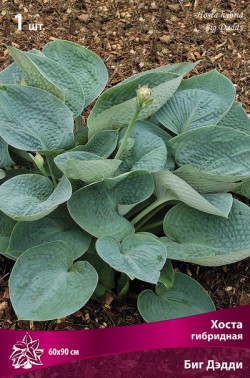 Биг Дэдди - высота куста 60см, ширина до 90см, листья чашеобразные, темно-голубые, морщинистые, цветки белые. Крупная. Медленнорастущая.