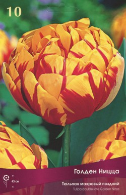 Голден Ницца - высота растения 45 см, цветок красный с желтыми полосками.