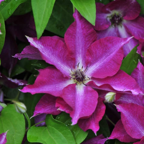 Этот сорт из группы раннецветущих крупноцветковых клематисов достигает в высоту до 2 м. Цветки простые, состоят из 6-8 эллиптических лепестков со слегка волнистыми краями и заостренным верхом, диаметром 12-15 см. Окраска красно-пурпурная с оригинальной белой полоской посередине, которая расширяется ближе к центру цветка. При отцветании приобретает лимонные нотки, обратная сторона лепестков розовая. Цветет с мая по июль. Цветки появляются на высоте 0,3 м.