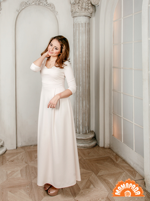 Мягкая и приятная ткань, ложащаяся элегантными складочками, в сочетании с цветом "пломбир" хорошо стройнит фигуру, скрывая всё лишнее, и делает вас неотразимой.