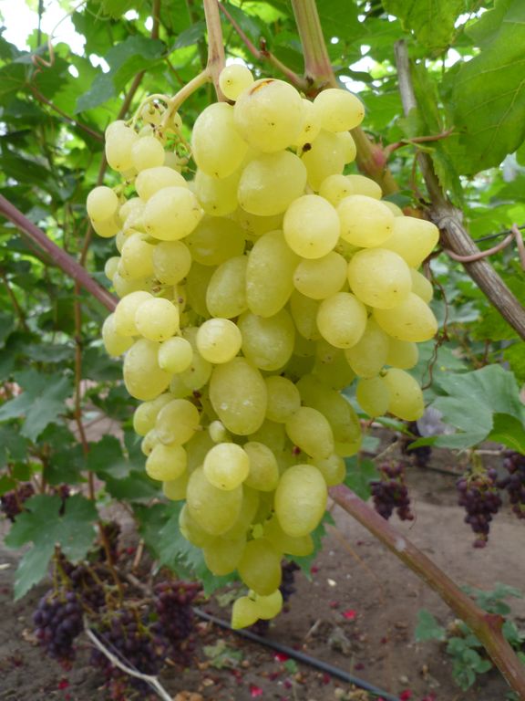 Очень раннего срока созревания. Столовый. Куст сильнорослый. Цветок обоеполый. Гроздь очень большая, коническая, очень рыхлая, средней массой 780 г. Ягода очень крупная, яйцевидная, желтой окраски, мякоть мясистая, привкус отсутствует, сок бесцветный. Дегустационная оценка свежего винограда 8,6 баллов. Семя в ягоде среднее, 1-2 шт. Средняя урожайность 202 ц/га. Транспортабельность высокая. Болезнями поражается в средней степени. Укрывной.