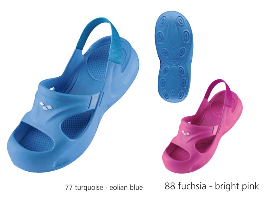 Легкие детские сланцы для бассейна. Эсклюзивный дизайн подошвы гарантирует хорошее сцепление на мокрой поверхности. Наличие эластичного пяточного ремешка позволяет сланцам не спадать во время движения. Закрытый дизайн мыска - защита пальцев. Материал сланцев - ультрамягкий этилвинилацетат - превосходная посадка и аммортизатор, хорошая устойчивость к хлору.