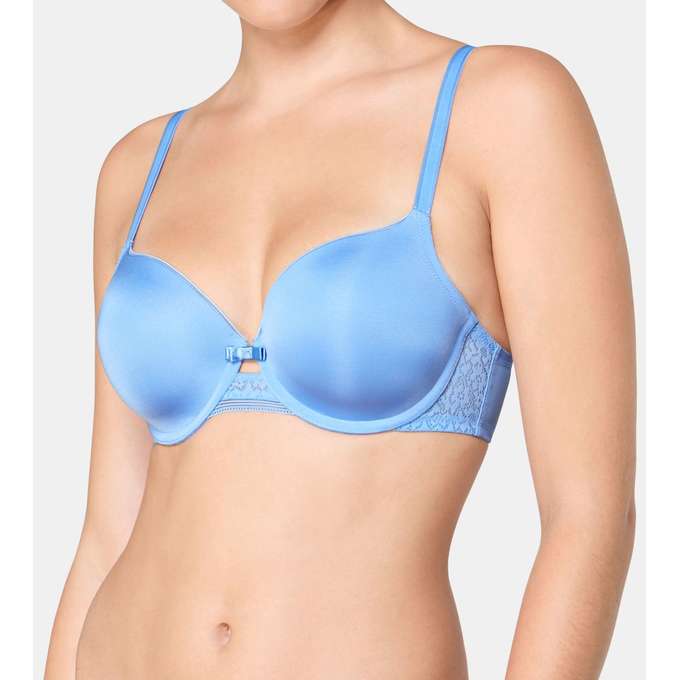Бесшовный бюстгальтер Triumph из шелковистой микрофибры с блеском. Особенности: плотная чашка на косточке, глубокое декольте, атласные регулируемые бретели.