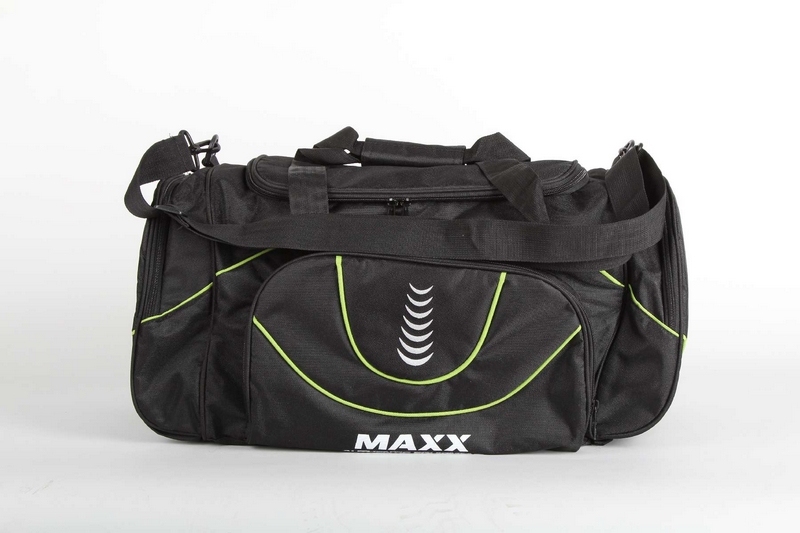 Вместительная спортивная сумка на двух удобных ручках. По бокам объемные карманы на молнии. Регулируемый ремень на карабинах. Спереди небольшое отделение с застежкой на молнию. Декорирована ярким контрастным рисунком и кантом.